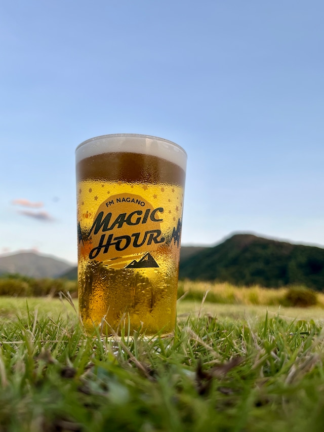 【さぁ、”マジカワ アワHOURグラス” でいっしょにカンパイしましょう!!】 FM長野の夕方のワイド番組「MAGIC HOUR」が2025年7月15日で放送1000回を迎えました! これも日頃からお聴きいただいてるリスナーの皆さんのお陰です。ありがとうございました。 そこで、マジカワ放送1000回を記念した番組オリジナルのカンパイグラスを用意しました。 ビールや炭酸飲料など、お好きなアワの出るドリンクを注いで、夕暮れ時のMAGIC HOURの空に向かって、みんなで一緒にカンパイしましょう! 【デザイン】 番組ロゴの左右に揺れる波は、ラジオから流れる音と信州から望む山脈を表現。 ラジオから広がる音と夜景が重なり合い、徐々に姿を現す星をモチーフにデザインしました。 乾杯の瞬間、グラス同士で波が繋がり、音がひとつになるイメージが込められています。 【商 品】 グ ラ ス : コニカルタンブラー 内 容 量 : 275cc 数 量:2個セット FM長野オフィシャルオンラインショップ限定販売です。 200個限定!お求めは早めにどうぞ。 【発 送】 商品の発送は2025年9月16日(火)以降を予定しています。予めご了承ください。